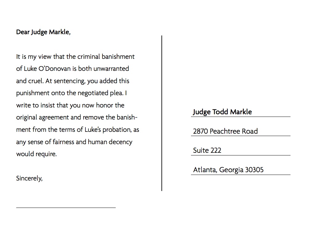Of everyone who went to the hospital, only O’Donovan faced charges. He took a negotiated plea deal and was sentenced in August. The deal didn’t initially include being exiled to Screven County in East Georgia after finishing his prison sentence, says Cantwell. He says an angry Judge Todd Markle, who was overseeing the case, imposed the banishment himself.